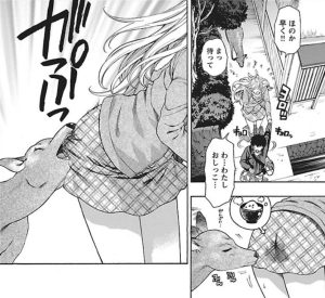 鹿にお尻を噛まれた衝撃でお漏らしするシーンがあります。